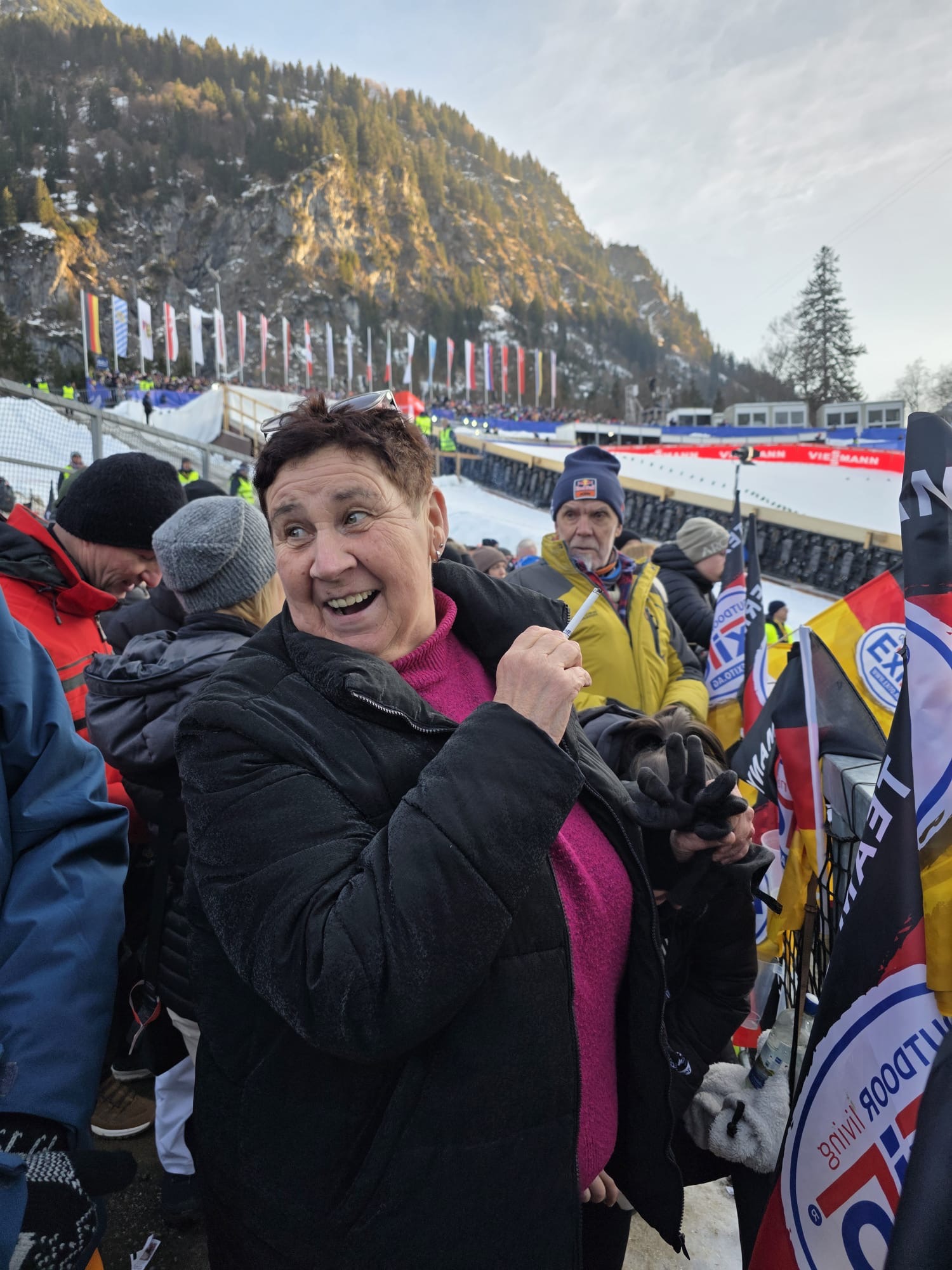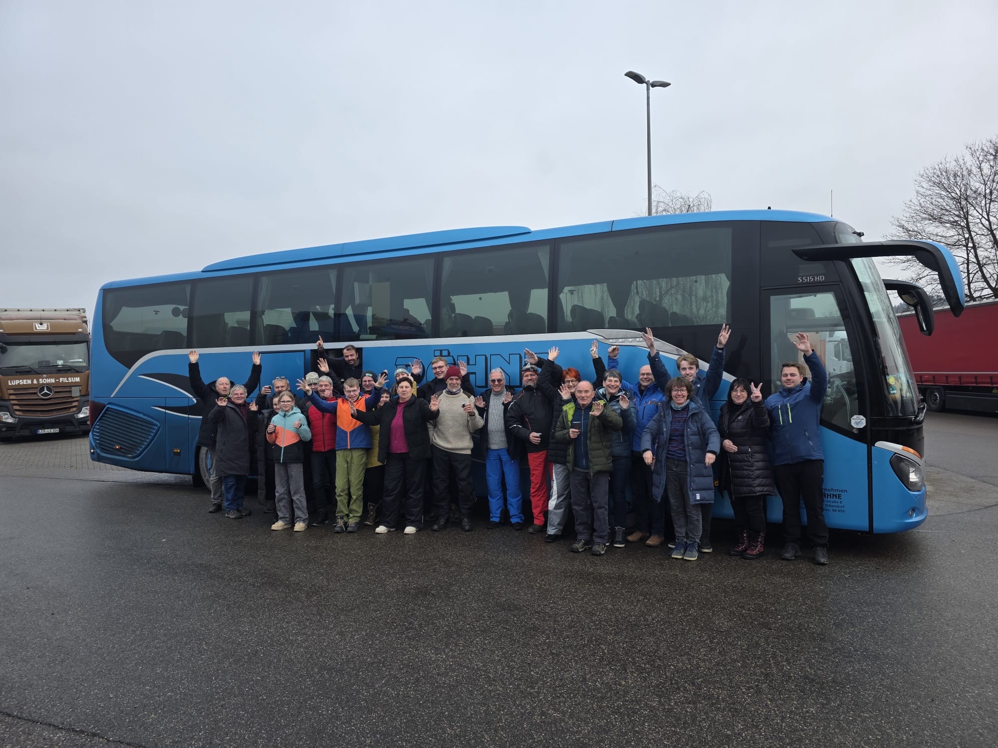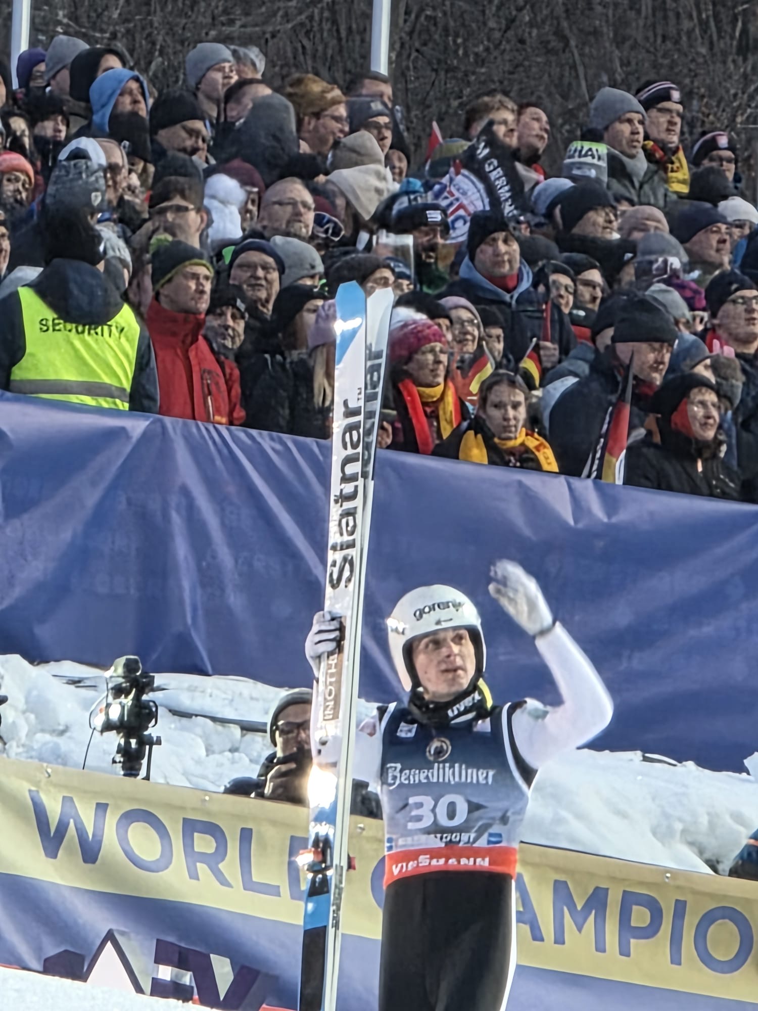 Gestartet um 5 Uhr in der Frühe fuhren die 2 Fahrer Jens und Marko des Lichtenauer Busunternehmens Dähne souverän die immerhin reichlich 500km bis zum Austragungsort und sorgten für eine gute Verpflegung. Für die Superstimmung im Stadion selbst waren dann natürlich die Teilnehmer der Ausfahrt selbst verantwortlich. Bei bestem Kaiserwetter und winterlichem Ambiente waren der Probedurchgang und die 2 Wertungsspringen ein kurzweiliges eindrucksvolles Erlebnis. Es ist tatsächlich nochmal ein wirklich beeindruckendes Ereignis und eine ganz andere Hausnummer, wenn man in Flügen von über 7 Sekunden in der Luft die Aktiven live begleiten kann und toppt das konventionelle Skispringen deutlich. Zudem hatten wir im Areal B3 ganz hervorragende Blicke und Impressionen auf Absprung- und Landebereich. Pünktlich 19.30 Uhr rollte dann nach einer Glühweinstärkung der „Dähnebus“ gesteuert von Jens und Marko wieder Richtung Sachsen, wo wir kurz nach um 2 wieder sicher und wohlbehalten, voll von Emotionen, aber gut ausgeruht an der Waldbühne angekommen sind. Ein unvergessliches eindrucksvolles Erlebnis für uns alle!!