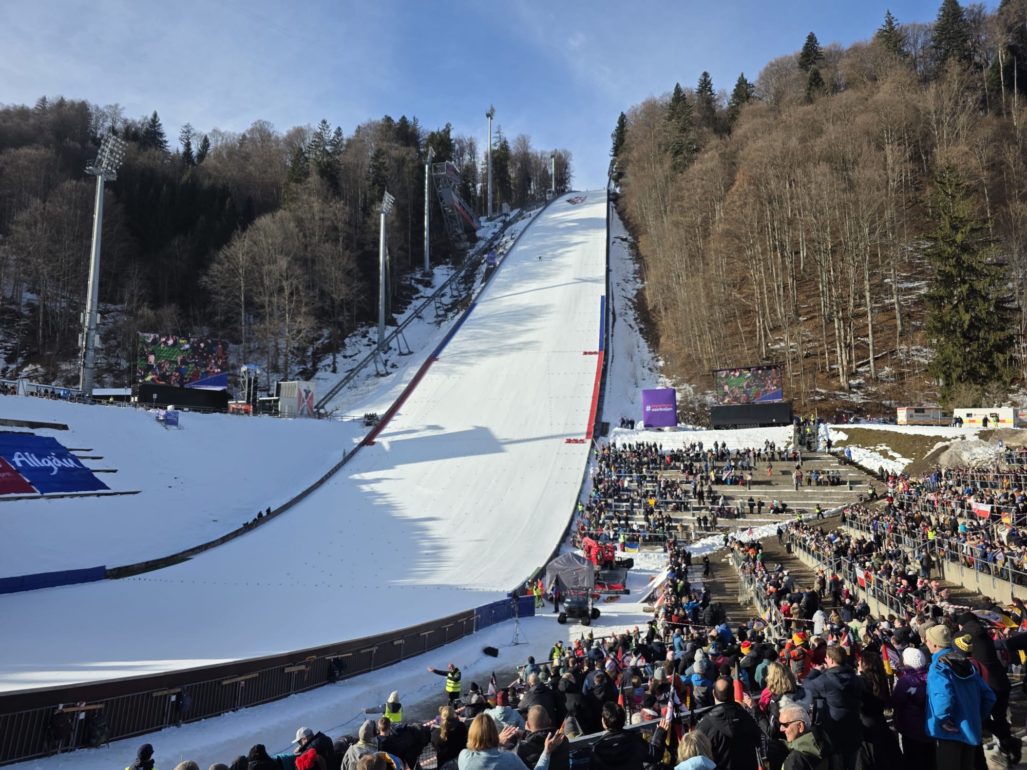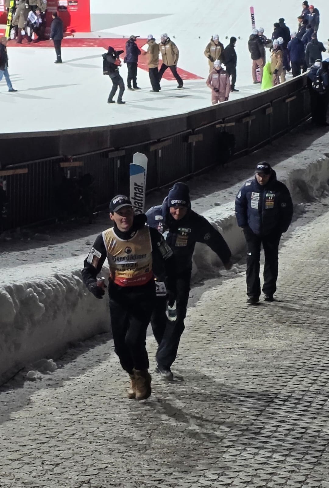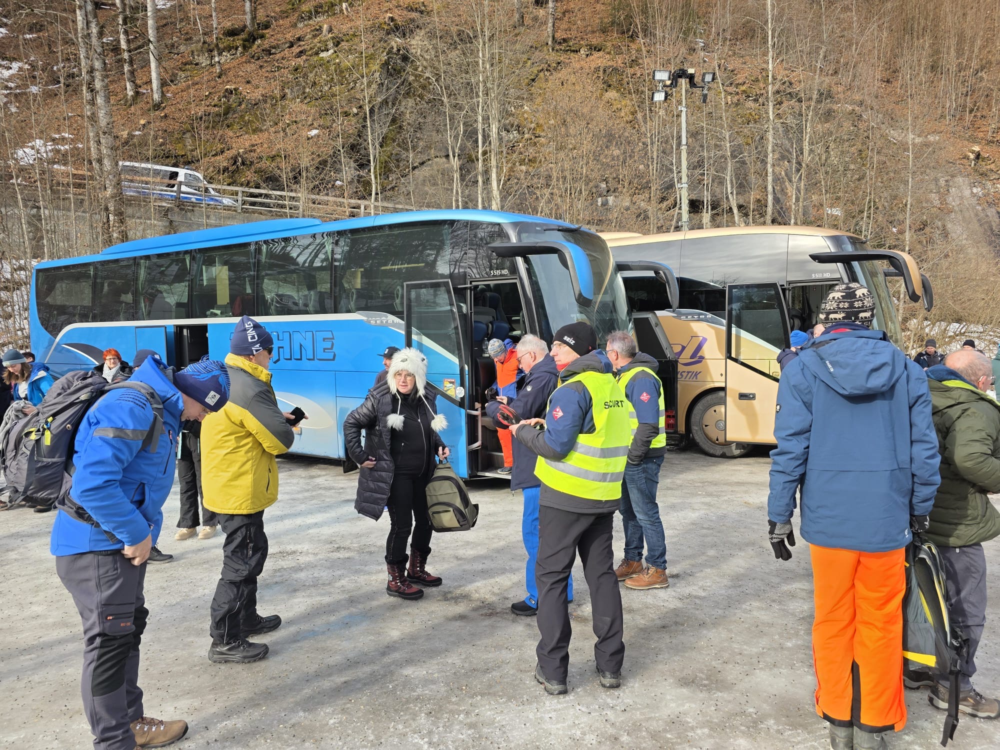 Gestartet um 5 Uhr in der Frühe fuhren die 2 Fahrer Jens und Marko des Lichtenauer Busunternehmens Dähne souverän die immerhin reichlich 500km bis zum Austragungsort und sorgten für eine gute Verpflegung. Für die Superstimmung im Stadion selbst waren dann natürlich die Teilnehmer der Ausfahrt selbst verantwortlich. Bei bestem Kaiserwetter und winterlichem Ambiente waren der Probedurchgang und die 2 Wertungsspringen ein kurzweiliges eindrucksvolles Erlebnis. Es ist tatsächlich nochmal ein wirklich beeindruckendes Ereignis und eine ganz andere Hausnummer, wenn man in Flügen von über 7 Sekunden in der Luft die Aktiven live begleiten kann und toppt das konventionelle Skispringen deutlich. Zudem hatten wir im Areal B3 ganz hervorragende Blicke und Impressionen auf Absprung- und Landebereich. Pünktlich 19.30 Uhr rollte dann nach einer Glühweinstärkung der „Dähnebus“ gesteuert von Jens und Marko wieder Richtung Sachsen, wo wir kurz nach um 2 wieder sicher und wohlbehalten, voll von Emotionen, aber gut ausgeruht an der Waldbühne angekommen sind. Ein unvergessliches eindrucksvolles Erlebnis für uns alle!!