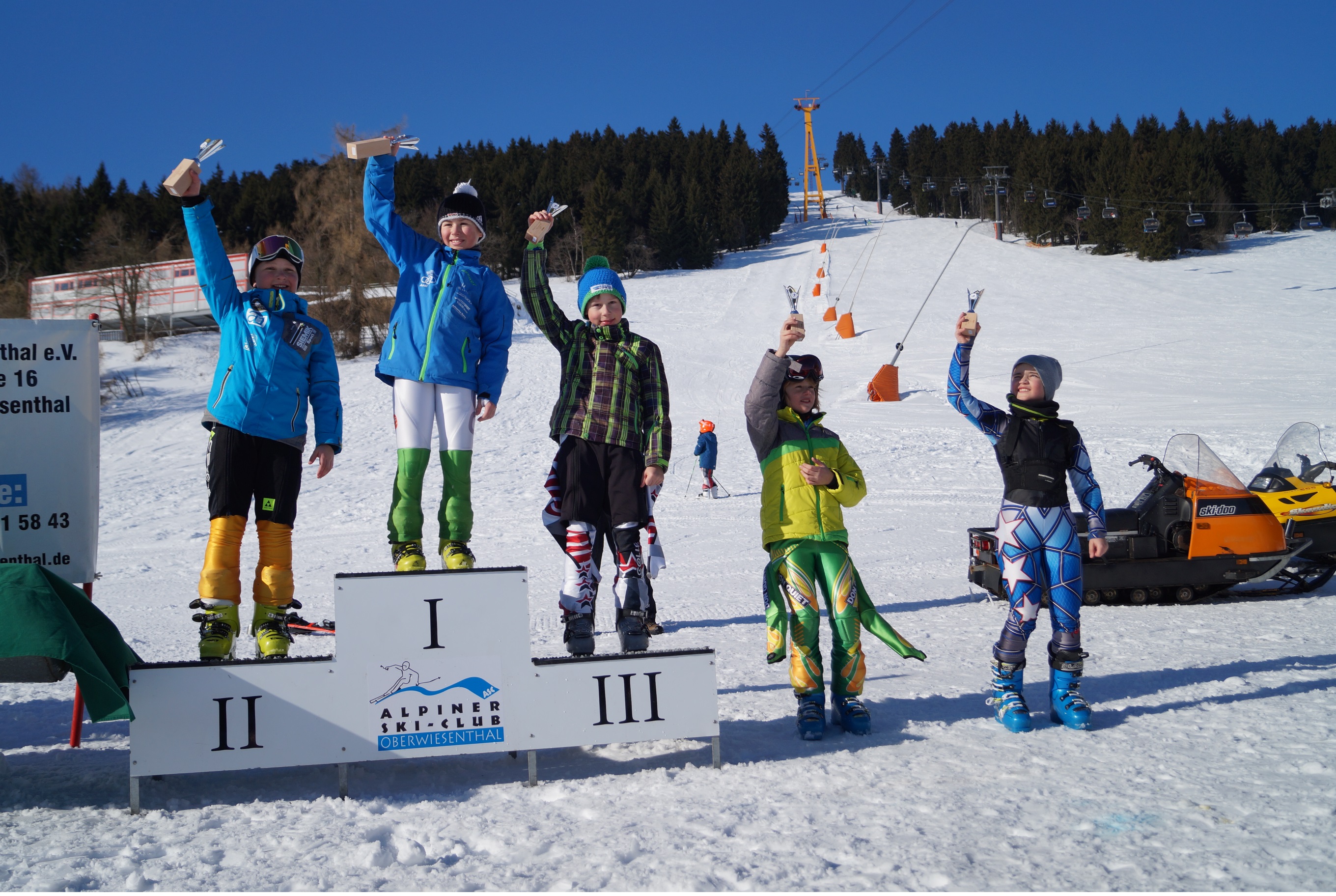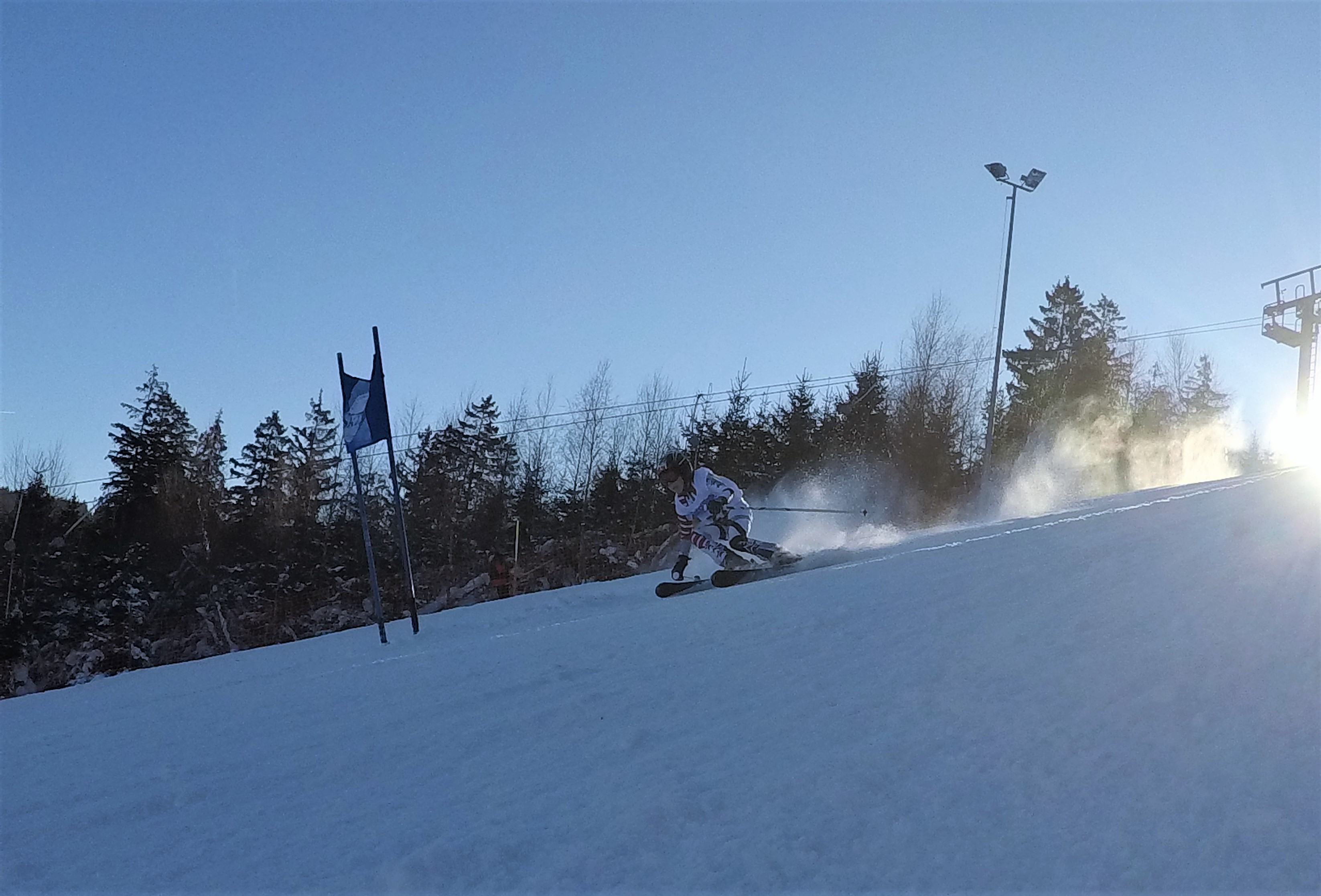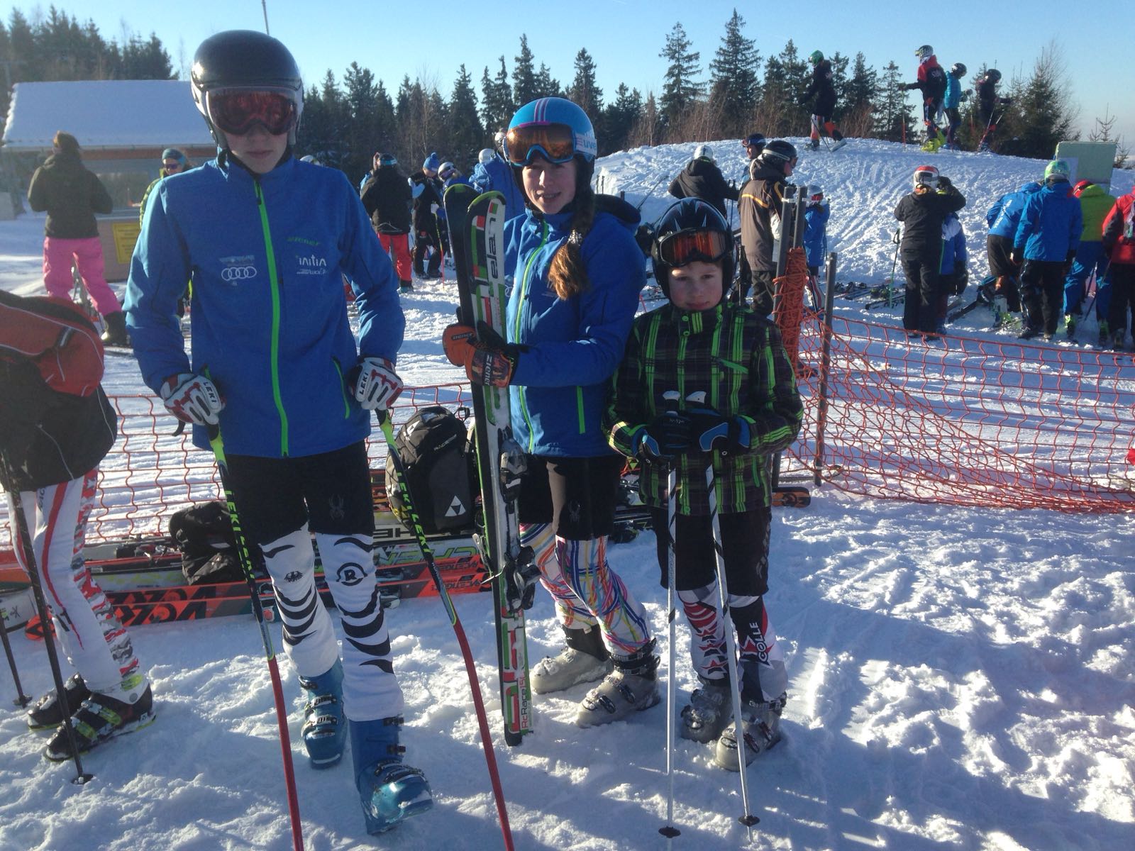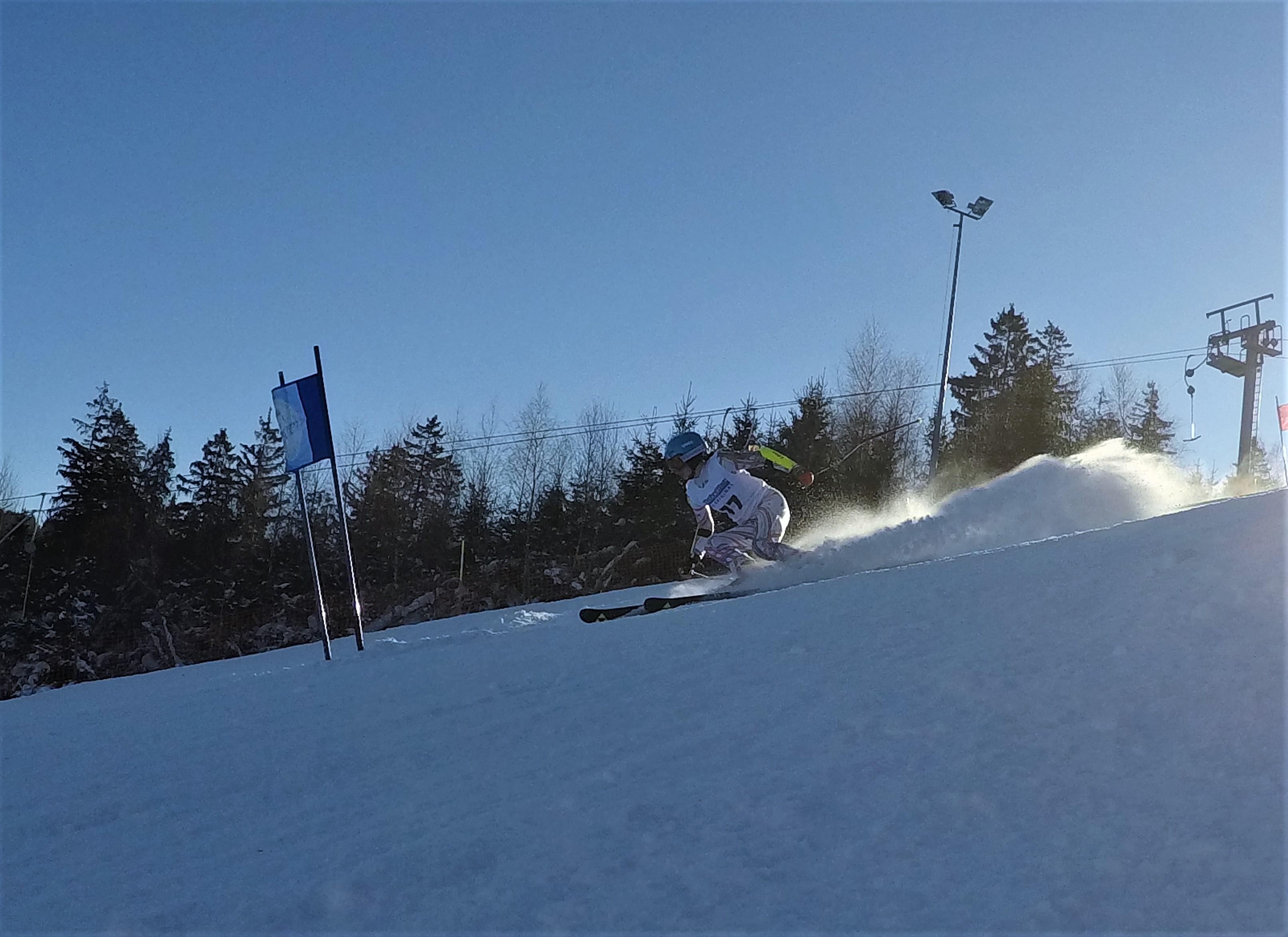 Am 22. Januar fuhren Udo und Mike mit Hans, Lukas und Marlene ins sonnige Schöneck zum TechniSat-Pokal. Als erstes durfte Hans unseren Skiclub auf der eisigen Piste in der AK U10 präsentieren. Mit einer soliden ersten Fahrt lag er mit nur 3 Zehntel Rückstand hinter dem Führenden auf dem 2. Platz. Im zweiten Lauf dachte Hans irrtümlicher Weise er hätte einen Torfehler und stieg den Hang wieder ein kleines Stück hinauf. Zum Glück stand Mike am Rennstreckenrand und sah, dass Hans keinen Fehler gemacht hatte und konnte ihn dadurch zum Weiterfahren überzeugen. Am Ende lag er mit einem guten Vorsprung auf Platz 3. Marlene fuhr in der U16 im ersten Lauf auf den 3. Platz, den sie auch im zweiten Durchgang verteidigen konnte. Lukas verlor im ersten Lauf durch einen kleinen Fehler wertvolle Zeit und lag zunächst auf Platz 5. Im zweiten Lauf zeigte er sein ganzes Können und konnte sich dadurch den 3. Platz in der AK U18 sichern.