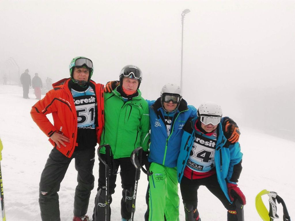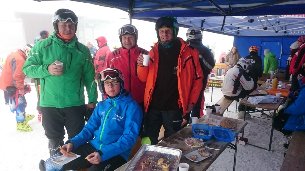 In Erwartung eines sonnigen Skitages machten sich fünf Augustusburger auf den Weg ins böhmische Kliny, um am dortigen Slalom der tschechischen Masters-Cup Serie teilzunehmen. Leider wurde spätestens in Neuhausen klar, dass es mit der Sonne wohl nichts werden würde, denn dicker Nebel lag über dem Erzgebirgskamm. Die dazu passenden Temperaturen stiegen auch mittags nicht über 9 Grad minus an. Ungeachtet des etwas widrigen Wetters stimmte das Rennfeeling zu 100% - ein großes Starterfeld, eine perfekte Piste, tolles Ambiente und kulinarische Rundumbetreuung. Nun war es an Mirko, Mike, Rico, Veikko und Lukas etwas daraus zu machen. Das Ergebnis fiel allerdings recht unterschiedlich aus. Beginnen wir mit Rico - Ehre wem Ehre gebührt - er zauberte trotz Nebels im unverkennbaren Stil zwei nahezu perfekte Läufe auf den Hang und durfte sich am Ende unter großem Applaus auf das dritte Treppchen des Siegerpodestes stellen (A5 = AK51). Ganz anders erging es Mike, der bereits im ersten Lauf mit einem Torfehler ausschied. Bei kaum erkennbaren Bodenkontouren und Stangenfarben fuhr er um eine Außenstange anstatt den richtigen, kurzen Weg zu wählen. Wirklich schade für ihn, da er deshalb im zweiten Lauf nicht antreten durfte. Mirko gelang ein guter erster und ein solider zweiter Lauf, was am Ende den zehnten Platz im starken Feld der Klasse A4 (AK46) bedeutete. Veikko verpatzte den ersten Lauf ab Tor 1 komplett und ein folgerichtiger Steher vernichtete alle Hoffnung auf eine vordere Platzierung. Immerhin gelang ihm ein fast fehlerfreier zweiter Durchgang und er schaffte noch Platz 4 mit einigem Rückstand auf Rico. Lukas hatten alle einen Podestplatz in der offenen Klasse zugetraut, aber auch er war der Sache nicht ganz gewachsen. Einige Tore vor dem Ziel stürzte er in den Fangzaun, konnte aber dank Zurücksteigens den zweiten Durchgang fahren. In diesem erzielte er die Bestzeit und wurde damit Letzter;-). Interessant auch wieder die Handicap-Wertung, in der alle Starter von AK31 bis AK51 erfasst werden und je nach Alter ein Zeitzuschlag erhalten. Dort verfehlte Rico mit Rang 11 knapp die Top 10, Veikko und Mirko folgten auf Platz 17 und 25 im Feld von etwa 50 Startern. Trotz der recht differierenden Erfahrungen unserer Sportler war es toller Tag bei unseren tschechischen Sportfreunden, die diese Rennserie mit viel Liebe und Engagement durchführen. Jetzt freuen wir uns alle schon auf das nächste Training (zumindest vier von uns), wenn Rico seinen Erfolg mit uns feiert.