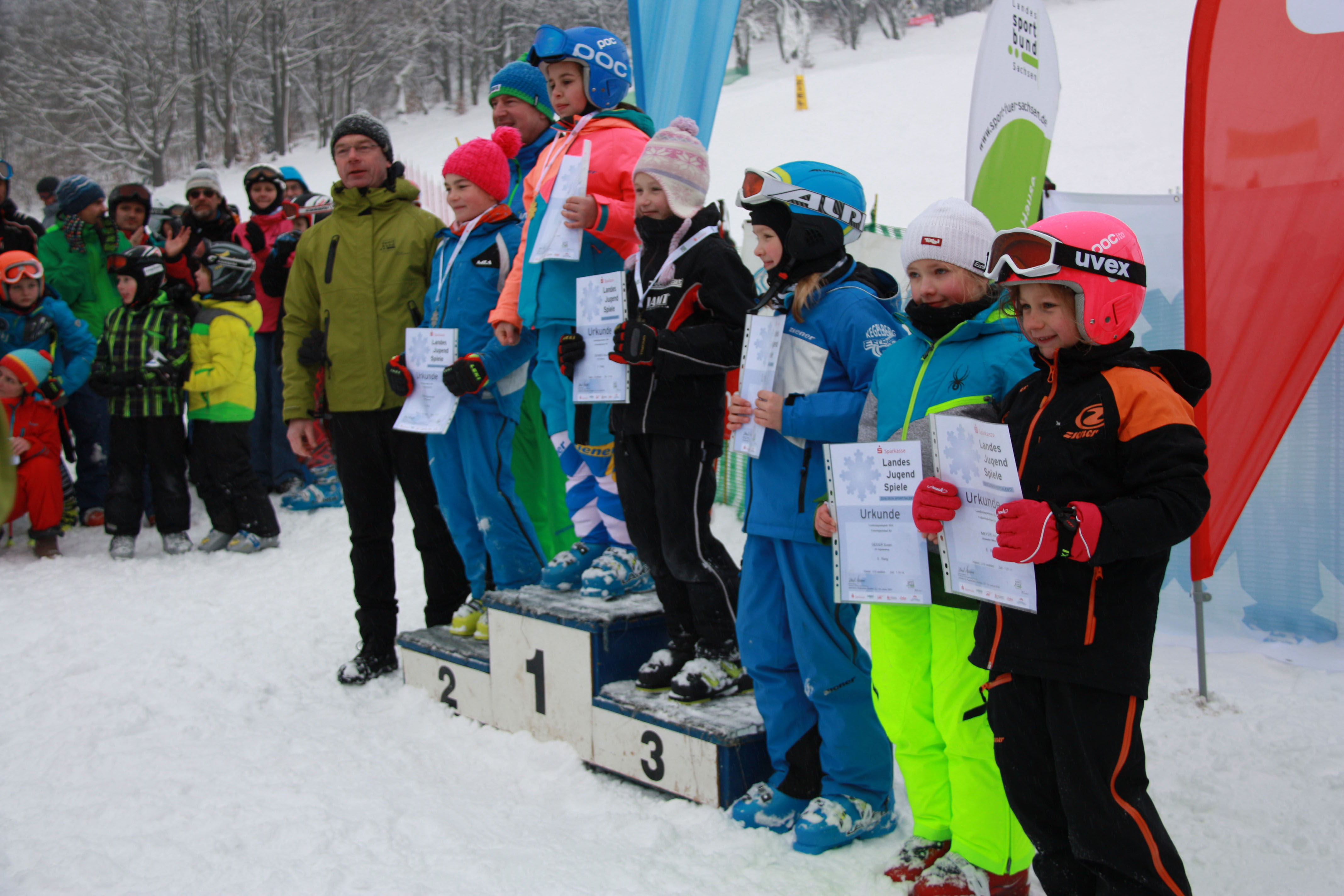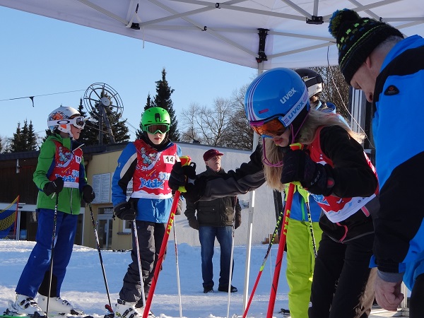 Mittlerweile auch zur Tradition geworden, finden alljährlich die Schulmeisterschaften des Regenbogengymnasiums und die der Grundschule der Stadt Augustusburg statt. In Zusammenarbeit mit den Sportlehrern beider Einrichtungen, dem Hort und Rost´s Wiesen, werden vom Skiclub Augustusburg diese beiden Meisterschaften ausgerichtet. Dem Aufruf folgten am 29.01.2016 insgesamt 18 Schüler und Schülerinnen der Klasse 6 bis 10 des Gymnasiums, dazu gesellte sich noch die komplette Klasse 5 mit 22 Schülern, deren Skiwoche mit diesem Wettkampf endete. Die Grundschule nahm mit 25 Kindern teil, sodass an diesem Tag über 60 Schülerinnen und Schülern den von Mirko Fleischer gesteckten Riesemslalomkurs erfolgreich absolvierten. Viele Teilnehmer und auch Eltern konnten es nicht glauben, aber trotz frühlingshafter Temperaturen und strahlendem Sonnenschein gab es Schnee genug und somit auch noch richtig gute Wettkampfbedingungen. Der Skiclub setze erstmals dank der vielen freiwilligen Helfer aus dem Verein, die komplette Technik mit Zeitmessung und Anzeigetafel ein. Somit konnten die Meister aller Klassen in einem spannenden Wettkampf ermittelt und anschließend, so wie es sich für ein echtes Rennen gehört, auf dem „Stockerl“ geehrt werden.
