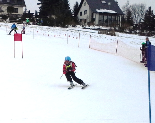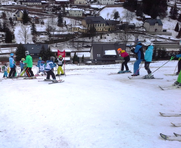 Nachdem wir am 10. und 11. Dezember schon mal auf dem heimischen Hang die ersten Spuren in den (Kunst-) Schnee ziehen konnten, stand am 4. Adventswochenende das Trainingslager am Keilberg auf dem Programm. Wir waren nach der Wetterhistorie der letzten Wochen doch alle sehr skeptisch, doch schon bei der Ankunft auf dem Parkplatz war klar, dass es was wird, mit dem Skitraining. Wie die Schneemacher vom Keilberg das hinbekommen haben, wird ihr Geheimnis bleiben. Da die Temperaturen an beiden Tagen unter Null lagen, waren die Bedingungen ordentlich und dank weniger anderer Skifahrer konnten wir unser Trainingsprogramm gutgelaunt abspulen. Je zwei Einheiten pro Tag mit intensiver Technikschulung verlangten den 35! Teilnehmern doch einiges ab. Zum Glück waren Unterkunft und Verpflegung wieder hervorragend, so dass auch die Erholung nicht zu kurz kam. Trainiert wurde in drei Gruppen, dabei gab es erstmals eine Erwachsenen Crew unter Leitung unseres „neuen“ Skilehrers Volkmar Reck, die offensichtlich mit sehr viel Spaß bei der Sache war. Abgekämpft und glücklich über das schöne Wochenende direkt vor dem Weihnachtsfest waren alle Teilnehmer am Sonntag zum Stollenessen wieder zu Hause.