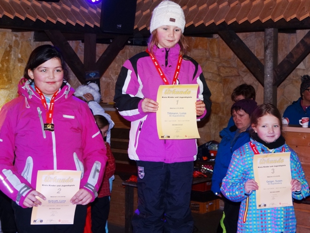 Trotz weiterhin ausbleibender winterlicher Kälte reichte die Schneeauflage für die Durchführung der diesjährigen Kreis Kinder- und Jugendspiele des Landkreises Mittelsachsen auf Rosts Wiesen. Obwohl zeitgleich die KKJS -Veranstaltungen des Erzgebirgskreises und des Vogtlandkreises stattfanden, trugen sich mehr als 60 Teilnehmer in die Startlisten ein. Schön dass neben den Augustusburger und Holzhauer Mittelsachsen auch wieder Sportler aus Einsiedel, Nossen und Elstra auf die Piste gingen. Auch ohne die ganz große Konkurrenz entwickelten sich spannende Wettkämpfe um die Titel des Kreismeisters in den der verschiedenen Altersklassen. Dank der vielen Helfer standen zum Mittag Sieger und Platzierte fest und konnten ihre Urkunden und Medaillen aus den Händen des KSB-Präsidenten in Empfang nehmen. Die komplette Ergebnisliste ist unter der Rubrik "Wettkämpfe" zu finden. Unser Dank gilt allen Mitwirkenden hinter und vor den Kulissen und natürlich dem Team des AFR, dass wenig Kälte zu relativ viel Schnee verwandelt hat.