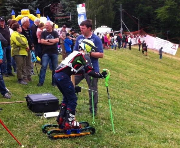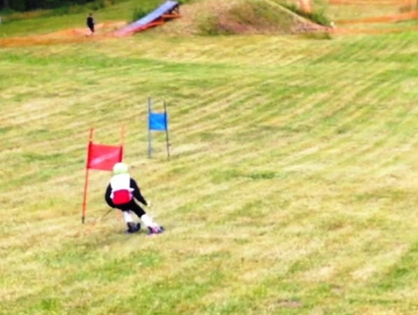 "Am 29.06.2014 wurden auf dem Skihang Rosts Wiesen im Rahmen des Drahtseilbahnfestes die Vereinsmeisterschaften des GRASSKITEAM ERZgebirge im Grasski ausgetragen. Neben Sportlern der Skivereine Ehrenfriedersdorf, Zschopau und Nossen sowie einer tschechischen Rennläuferin gingen von unserem Verein Annabel Dietz, William Dietz, Lukas Richter und bei den Erwachsenen Michael Dietz an den Start. Für alle vier Starter unseres Vereins stellte dies das erste Rennen auf Grasski dar. Es galt vier Läufe im Riesenslalom und zwei Läufe im Slalom zu absolvieren. Der frisch gemähte Hang lieferte hierzu beste Bedingungen. Lediglich die Spuren der Wildschweine brachten den einen oder anderen Rennfahrer in Bedrängnis, wenn die Ideallinie einmal verlassen werden musste. Die Kinder und Jugendlichen unseres Vereins zeigten bei ihrem Grasskidebüt durchweg sehr ansprechende Leistungen, wie auch Grasskitrainer Torsten Richter im Anschluss an das Rennen würdigte. Der Mut unserer Aktiven ist besondere Anerkennung wert, erweist sich der Grasskisport doch als recht anspruchsvolle Disziplin: Die einem Raupenantrieb ähnlichen Rollski lassen ein Bremsen und Anhalten auf dem Hang, wie wir es vom Winterski kennen, nicht zu. So trauten sich dann auch nur Annabel und William Dietz den Slalomkurs hinunter, während es Lukas Richter und Michael Dietz bei ihren Läufen im Riesenslalom beließen. Für eine professionelle Zeitnahme sorgte Mike Richter. Alle Rennläufer erhielten Urkunden mit ihren Zeiten, so dass sie ihre Leistungen mit ihren Mitstreitern vergleichen konnten. Eine Rangliste wurde nicht geführt. Der Einsatz der Kinder wurde mit Freifahrten für die Sommerrodelbahn belohnt.