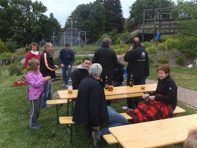 Am Abend trafen wir uns dann zum gemeinsamen Grillen aller Altersklassen an der Rodelbahn. Das Lagerfeuer war durch Felix schnell entzündet und die ersten Knüppelkuchen wurden über dem Feuer gedreht. Die Kinder waren erst einmal versorgt und so konnten die Erwachsen das Grillen starten. Die Zeit verging schnell, um sich in gemütlicher Runde zu unterhalten und die Speisen und Getränke zu genießen. Die Kinder beendeten den Abend mit einigen Fahrten auf der Sommerrodelbahn, wo die Paarungen der Schlittenbesatzungen ständig wechselten und der Spaß nicht zu kurz kam.