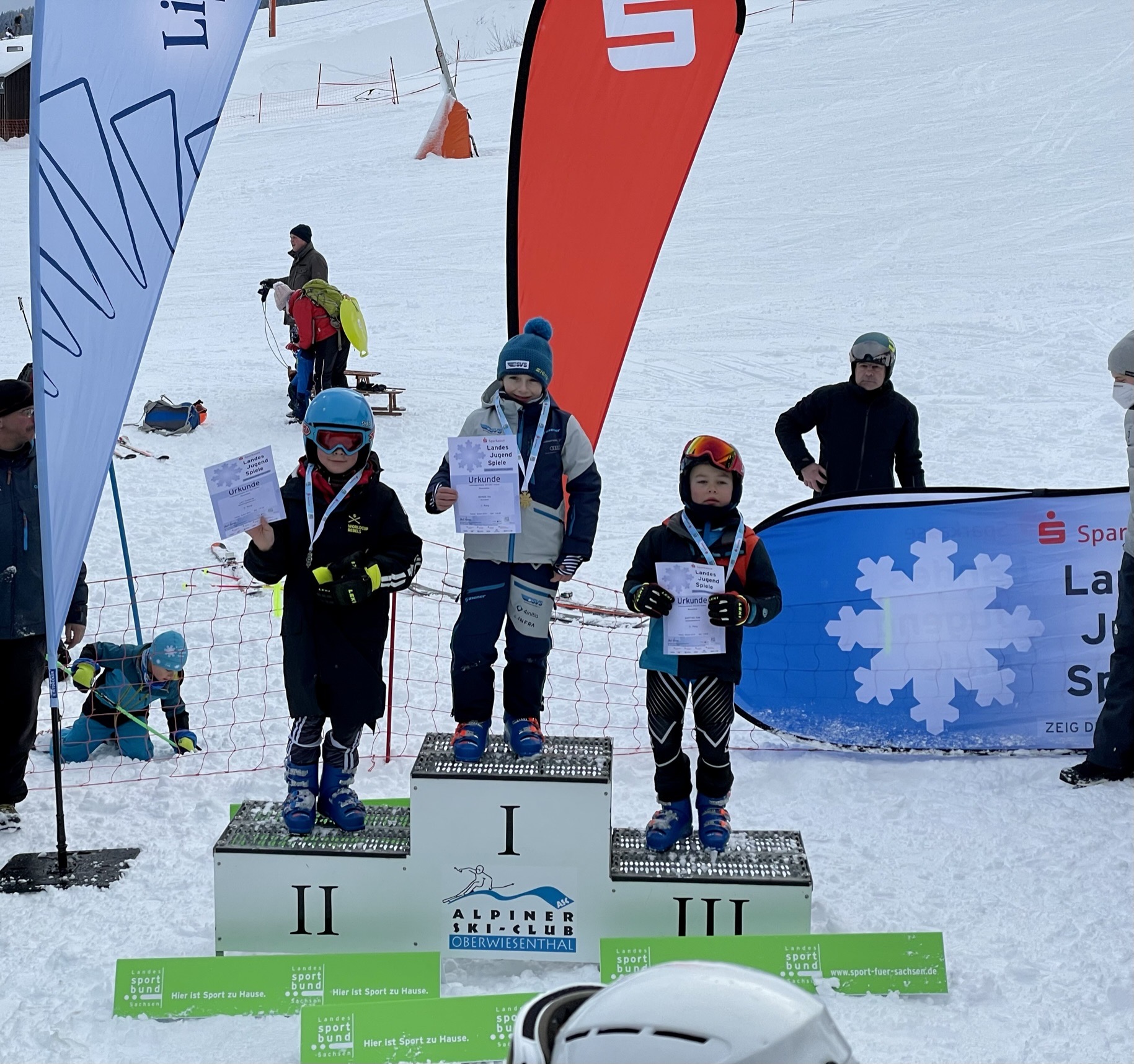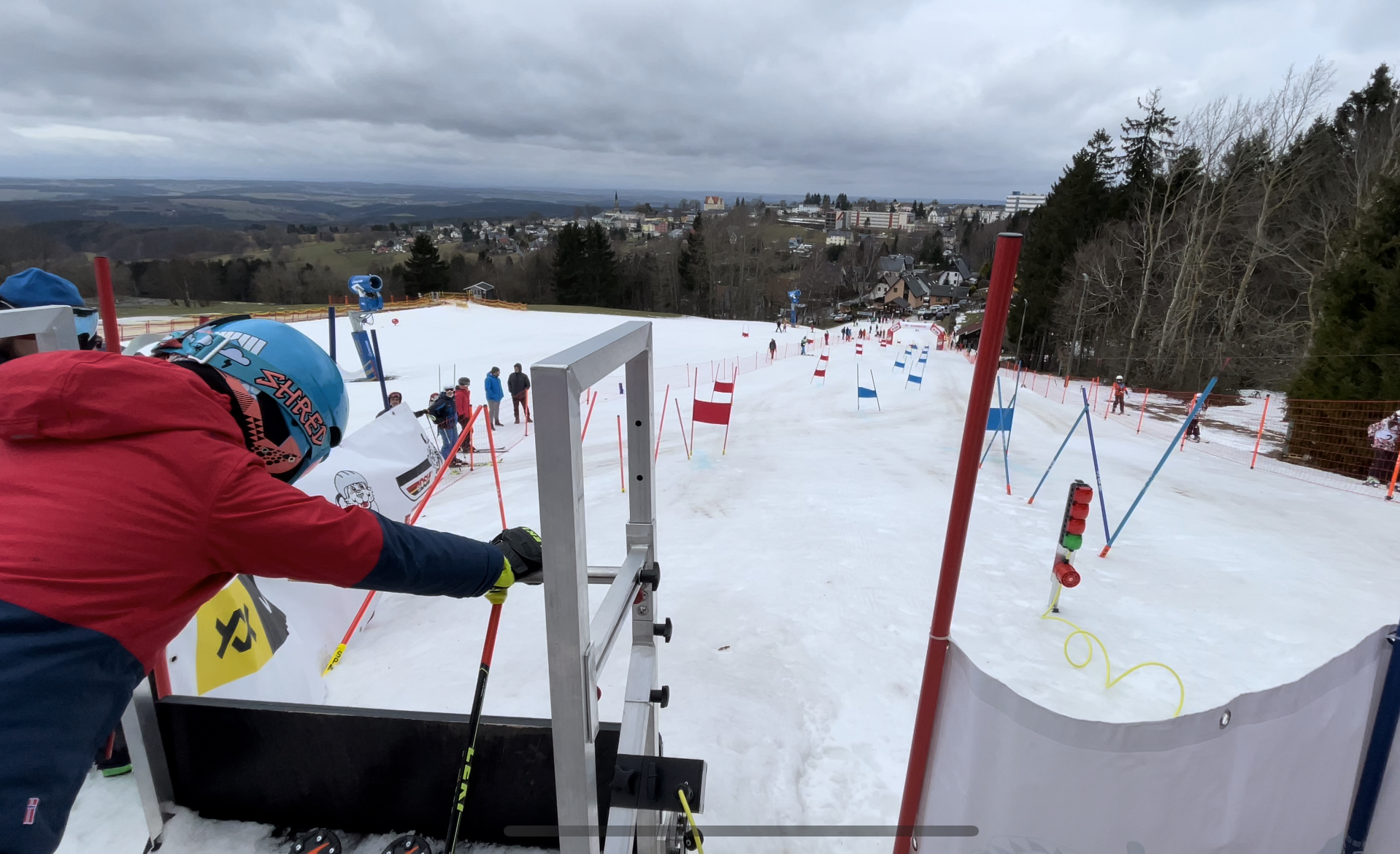 Ein knapp halbminütiges Feuerwerk brannte hingegen Marc Fernando List bei seinem ersten Lauf am Samstag ab. Unter wechselhaften Bedingungen und Neuschnee setzte er sich mit einer Zeit von 32,90 Sekunden knapp an die Spitze seines Jahrgangs. Oskar Schneider belegte nach seinem aufregenden ersten Wettkampflauf den fünften Rang in seiner Altersklasse. Der zweite Lauf, auf dem kaum veränderten Kurs beendete Oskar ebenfalls auf dem fünften Platz, womit er auch Fünfter in der Gesamtwertung wurde. Marc Fernando List lieferte sich hingegen ein Duell mit Kalle Barthel aus Ehrenfriedersdorf und Tim Heinze vom SC Carlsfeld. Dabei unterlag er knapp im zweiten Lauf dem Carsfelder Athleten. In der Endabrechnung musste er sich um weniger als 5 Hundertstel geschlagen geben und belegten einen hervorragenden zweiten Platz.
