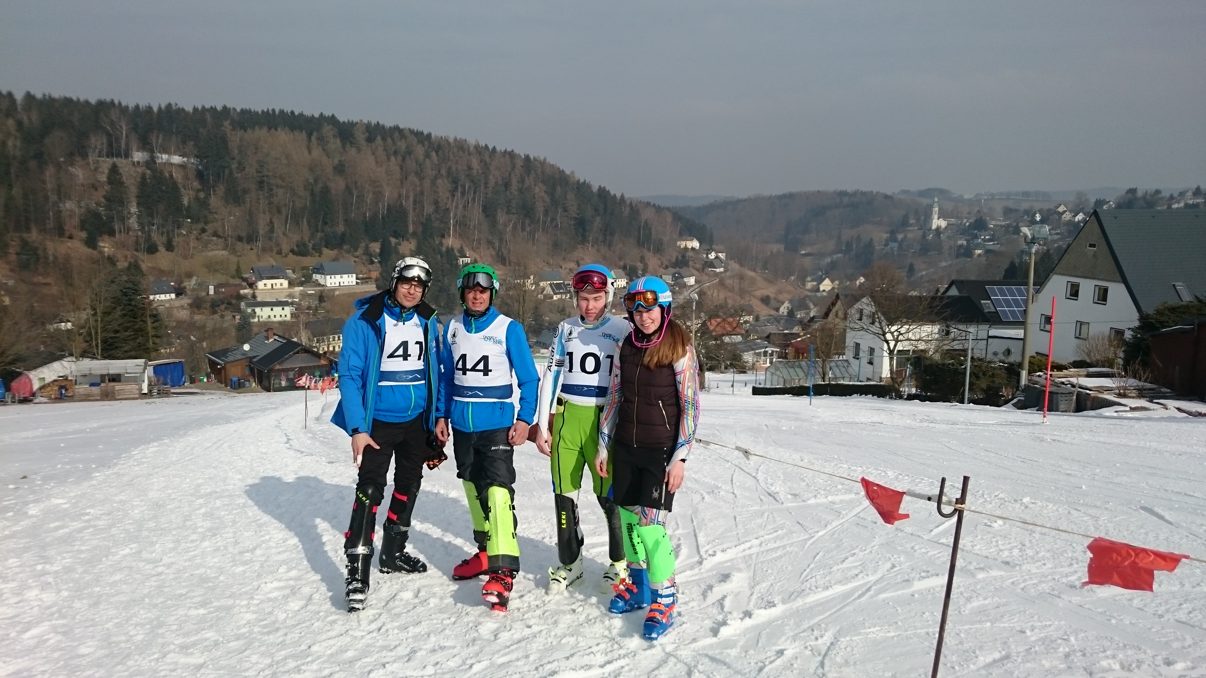 Da die Ausschreibung für den SMC in Pobershau auch den Start der AK U18 und U21 ermöglichte, waren neben den "echten" Masters Rico und Veikko auch Marlene Porstmann und Lukas Richter (leider als Einzige in ihren AK) am Start. Bei schönstem Wetter und im Steilhang eisiger Piste war ein schnelles Umdenken zwischen dem flachen Oberteil mit seinen sehr lang gezogenen Toren und dem knackigem Schlussteil gefordert. Am besten schaffte das Lukas, der zwei richtig starke Läufe in den Schnee ziehen konnte und am Ende die viertbeste Laufzeit aller Starter hinlegen konnte - Glückwunsch! Aber auch Marlene fuhr ein gutes Rennen und war damit eine Sekunde schneller als die Erfahrungsträger. Bei diesen setzte sich im internen Dauer-Duell Rico mit vier Zehnteln Vorsprung recht deutlich durch. Mit dieser Leistung durfte er als Drittplatzierter aufs Podest steigen. Veikko konnte mit knappem Vorsprung den vierten Platz im gut besetzten Feld verteidigen. Wenn das Wetter hält, freuen wir uns auf die Neuauflage in der nächsten Woche.