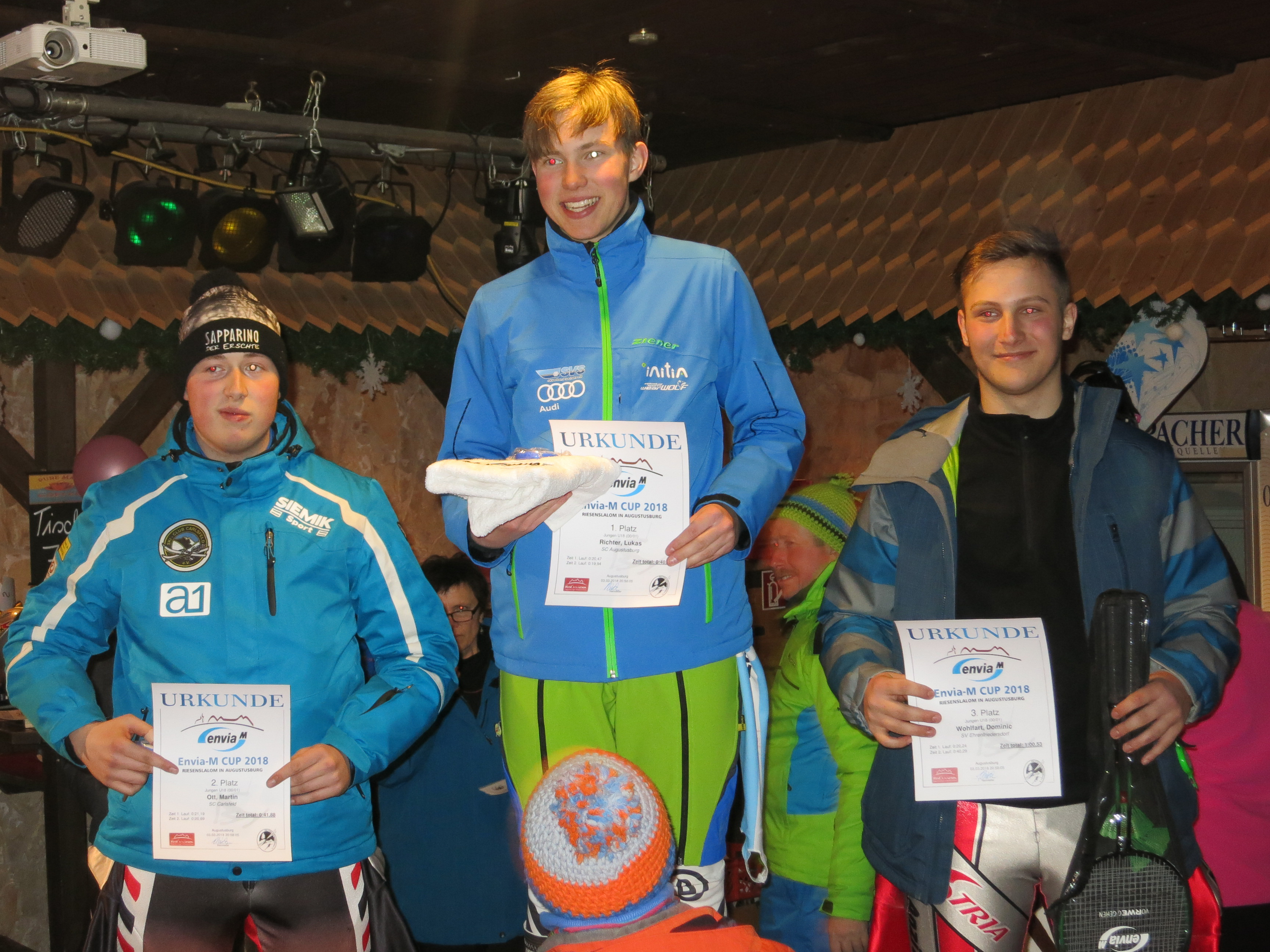 Am Samstag, den 13. Januar fand der U12 Cup auf dem Keilberg auf der schwarzen Piste und am Sonntag, den 14. Januar der U12 Cup und der Skitty Cup am Neklid statt. Am Samstag gingen Sten, Raphael und Hans in der AK U12 an den Start. In dieser Altersklasse nahmen insgesamt 28 Sportler teil. Bei erschwerten Bedingungen, steiler, eisiger Piste und dichtem Nebel fuhr Hans als erstes mit einem guten Lauf auf Platz 12. Im zweiten Lauf konnte er noch Zehntel gut machen und fuhr noch auf Platz 11 vor. Als nächstes stand Raphael auf der Startliste. Bei seinem ersten größerem Rennen fuhr er zunächst auf Platz 23. Im zweiten Lauf hat er sich leider im dichten Nebel verirrt und wurde aufgrund eines Torfehlers disqualifiziert. Sten brachte einen guten Lauf ins Tal, der zunächst für Platz 16 reichte. Im zweiten Lauf kämpfte er sich noch auf den 15. Platz vor.